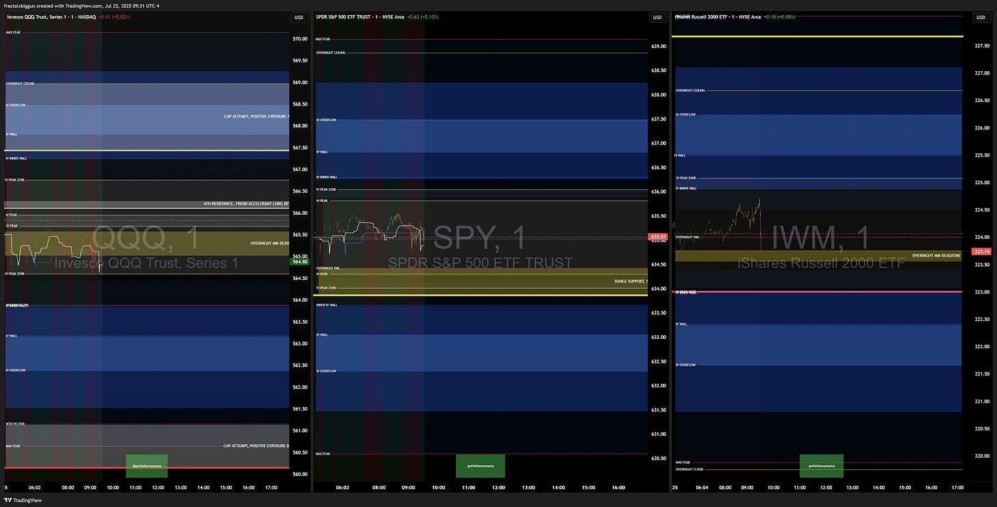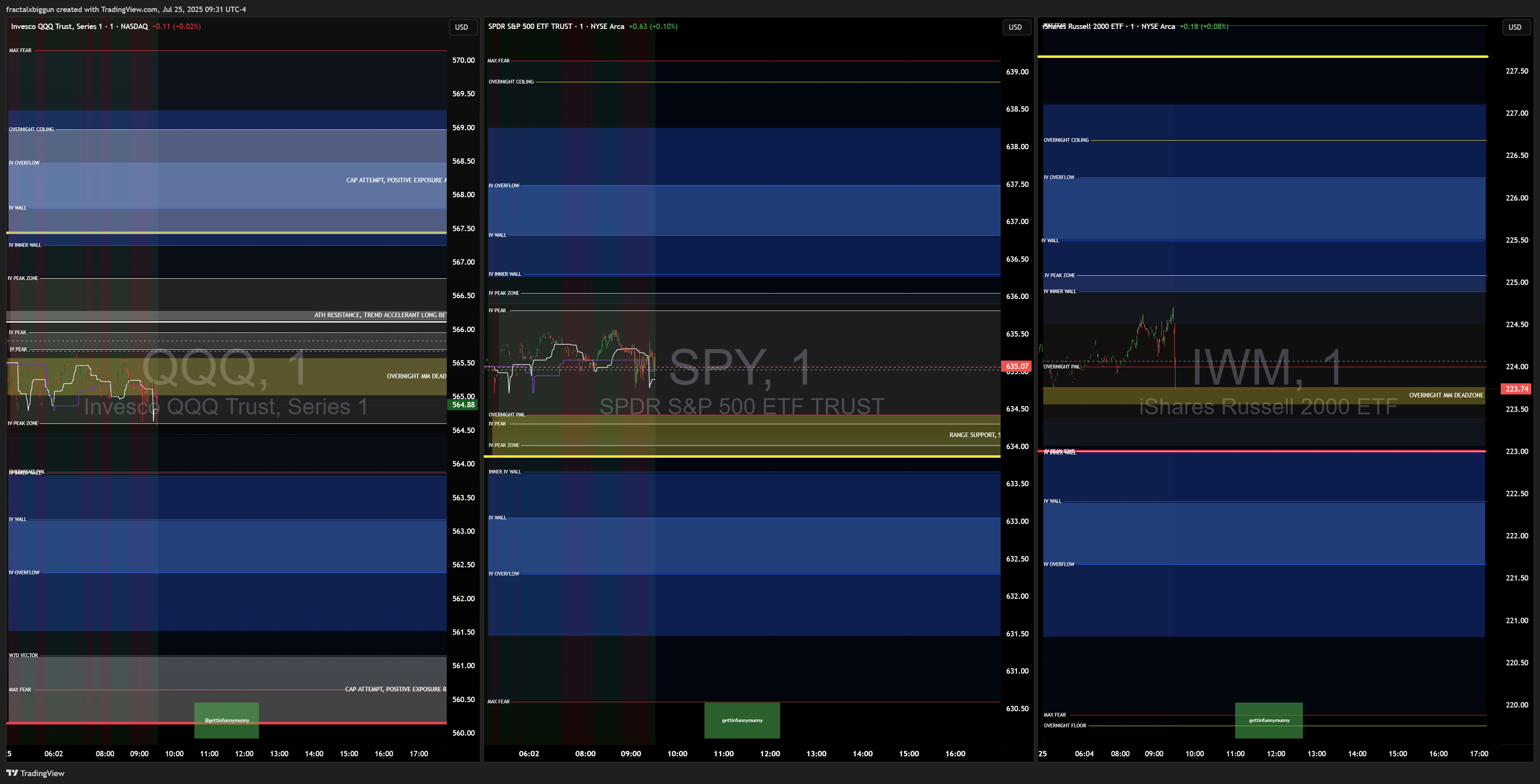 Overnight, we are encountering resistance at our pivot level. If we maintain the pivot level/ATH resistance as session resistance, the developing trend will grow short over time, heading toward the overnight PML, inner IV wall, and true IV wall zone. Should the pivot level and ATH resistances break and flip into support, we can continue long to our weekly ceiling and aggregated cap zone—a combination of the weekly ceiling, overnight ceiling, and true IV wall resistance. We anticipate a high-probability cap within this zone, with limited instances of positive exposure toward and beyond the max fear target level.